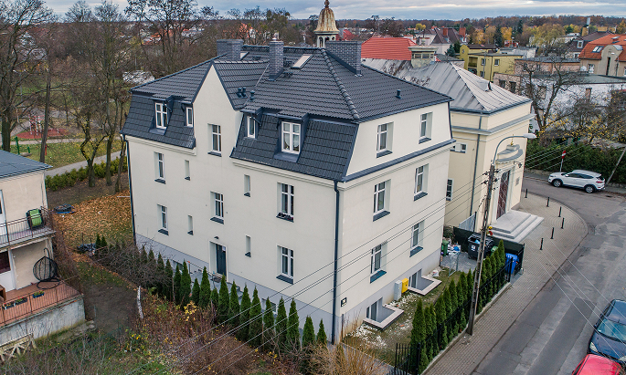 Pełna rewitalizacja przedwojennej kamienicy znajdującej się w otoczeniu zabudowy jednorodzinnej. W kamienicy powstało 8 funkcjonalnych mieszkań inwestycyjnych, które przynoszą stały dochód nowym właścicielom.