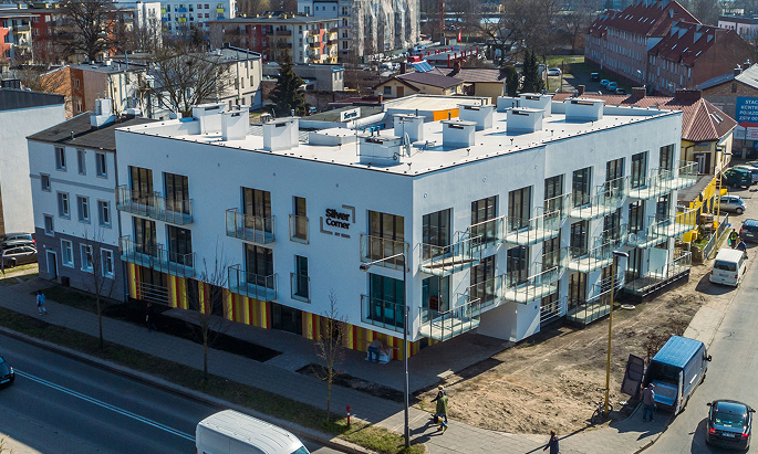 Silver Corner to Świnoujski budynek mieszkalny pod adresem Grunwaldzka 58A u zbiegu Lutyckiej. Budowa budowli wystartowała na początku 2019, a dobiegła końca w czwartym kwartale 2020 roku. Obiekt jest inwestycją deweloperską KMM Apartments. W odległości 201 metrów znajduje się Osiedle Lechickie, 362 metrów dalej znajduje się Budynek mieszkalny Gdyńska, a 371 metrów dalej budowany jest budynek Steyera.